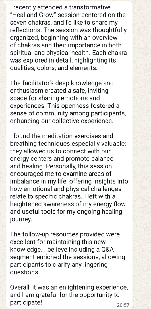 From my signature group programs like Heal & Grow, to 1:1 sessions and international workshops, I’ve built a growing global community of women and seekers who are ready to step into the highest version of themselves.