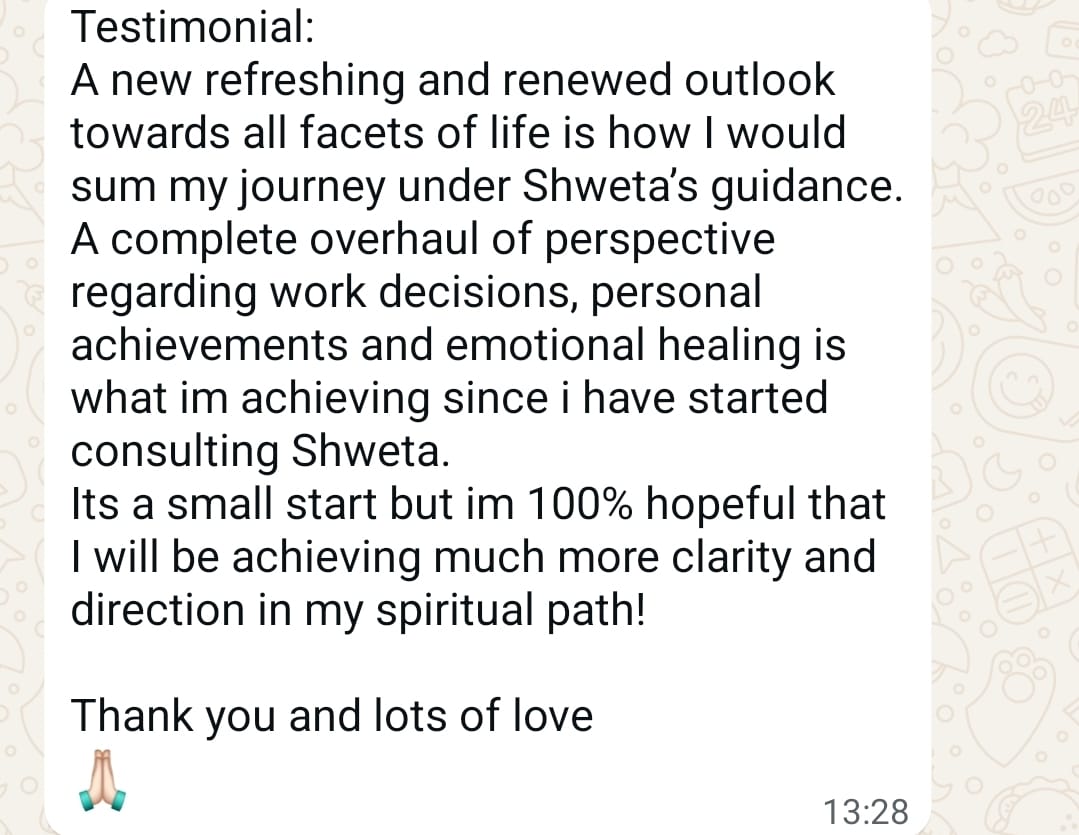 Hi, I'm Shweta Chatterjee, a Healing & Manifestation Coach. I help women release deep-rooted energetic blocks and reconnect with their inner power. Through intuitive guidance, spiritual tools, and soul-aligned practices, I support my clients in creating a life that reflects their true essence.